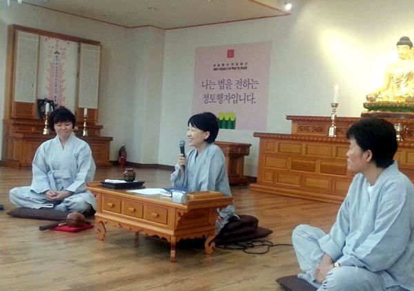 지난 9월 4일 마산법당에서는 경남지부 새물정진팀과 정토회 대표 이기혜 보살과의 만남이 있었습니다. 새물정진은 상반기 ‘정일사(정토회를 일구는 사람들)’ 수련의 후속 활동으로, 6월 26일 입재하여 100일 동안 정진하고 10월 3일 회향하는 프로그램입니다.