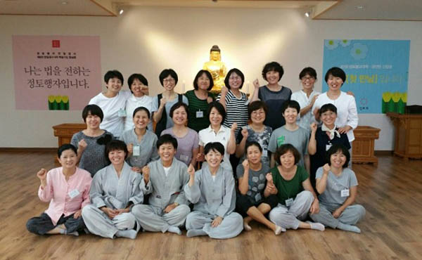 9월 4일은 정진 71일째 되는 날로 <선배활동가와의 만남>이라는 주제로 진행되었습니다. 이 자리에는 새물정진팀 9명, 지부활동가 8명, 지역 법당에서 총무소임을 맡고 있는 보살 6명 등 모두 23명이 참여하였습니다.
