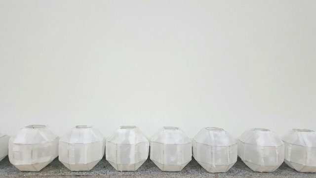 또 한쪽에서는 풀칠을 합니다. 꽃잎을 붙이기 위해서는 만들어진 틀에 하얀 종이로 초벌 작업을 해줘야 하는데요, 네모 종이 4장, 세모 종이 4장, 총 8장의 종이가 필요합니다. 동글동글 구슬 같은 모양이 만들어지기까지 풀칠하는 손길, 붙이는 손길, 모두 64번의 손길이 가야 하나의 초벌 연등이 만들어집니다.