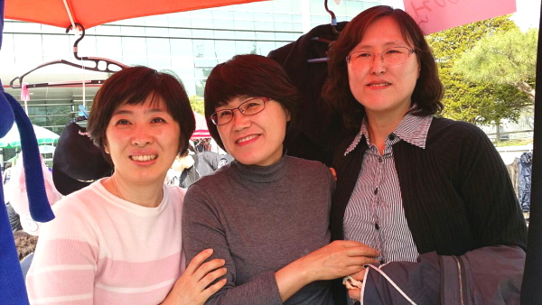 왼쪽부터 홍윤경, 구진옥 님입니다. 이경희, 윤석훈 님과 함께 법당에서 실어온 물건을 기흥구청 장터로 몇