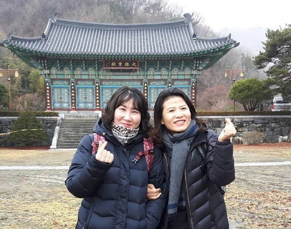 ▲ 경전반 도반과 함께하는 죽림정사 사찰순례 하는 나승아 님(오른쪽)