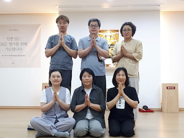 ▲ 새벽기도 후에 도반들과 함께(아래 가운데 이진숙 님)