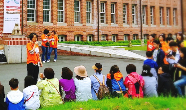 박물관에 도착 후 내부에 들어가기에 앞서 역사 선생님이었던 봉사자 양춘자 님이 1925년 일제 강점기에 지어진 도청소재지에 대한 자세한 설명을 해주었습니다. 우리의 공통관심사이며 다가오는 6월의 의미도 있기에 오늘의 방문지를 선정한 이유이기도 합니다.