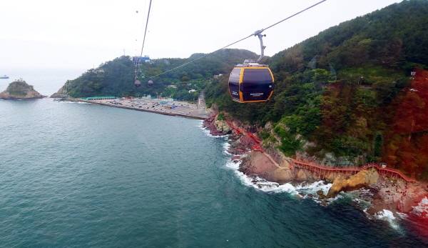 케이블카를 타기 전에 스카이워크를 산책하였습니다. 바다 위로 난 다리 위의 산책길은 바다 밑을 볼 수 있도록 군데군데 투명한 재질의 바닥과 뚫려 있는 부분이 섞여 있었습니다. 고소 공포증이 있는 리포터는 조금 무서웠습니다. 하지만, 좋은 벗님들은 수학여행 온 여고생들처럼 쿵짝짝, 짝짝쿵, 히히호호 굉장히 즐거워 보였습니다. 송도케이블카를 체험하면서 부산의 아름다운 경관을 체험하고 자연 속에서 서로 친근해지며 삶의 활력을 제공하는 기회를 가져보기로 한 이번 나들이의 취지에 딱!! 맞는 거 맞지요?!