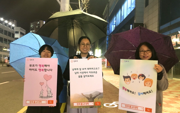 저는 명지법당의 불교대학 1기 졸업생이며 불교대학 졸업 후, 경전반에 입학했습니다. 저희 법당은 신설 법당이라 봉사자가 많이 부족합니다. 너무 귀한 법 만나서 제가 어떻게 살아가야 하는지에 대한 방향을 잡아가고 있어서 정토회는 저의 생활이 되어 가고 있었습니다. 하지만 다음 불교대학 담당자가 없어서 불교대학이 열릴 수 없다는 소식을 듣고, 저는 경전반 학생을 하면서 불교대학 담당자 소임을 받았습니다. 지금 생각해 봐도 제가 분별심 없이 덥석 받았던 것 같습니다. 그 이유를 되짚어 보니, 불교대학 수업이 끊어지는 것이 싫었기 때문입니다. 저처럼 힘든 분들이 정토회를 만나 새로운 삶을 살아가길 간절히 바랐고 소통의 장을 이어나가고 싶었습니다.