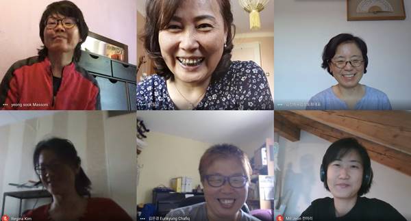 우리는 온라인 명상 중 (중앙 왼쪽에서 첫 번째 곽영숙 님)