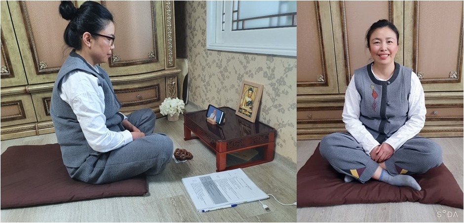 저는 반여법당 봄불교대학 담당자 소임을 맡고 있습니다. 요즘 코로나 여파로 온라인 수업을 하고 있는데, 우리 딸들의 역할이 한몫하고 있답니다. 컴퓨터 사용이 익숙하지 않은 터라 딸들에게 구글사용법, 온라인사용법, 컴퓨터 사용법 등을 배우고 있습니다.