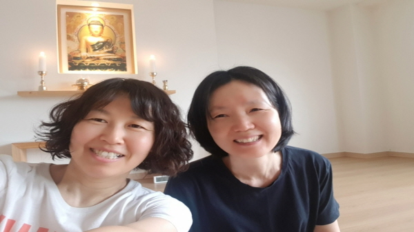 ▲ 정토법당에서 통일기도 후, 왼쪽이 한혜옥님