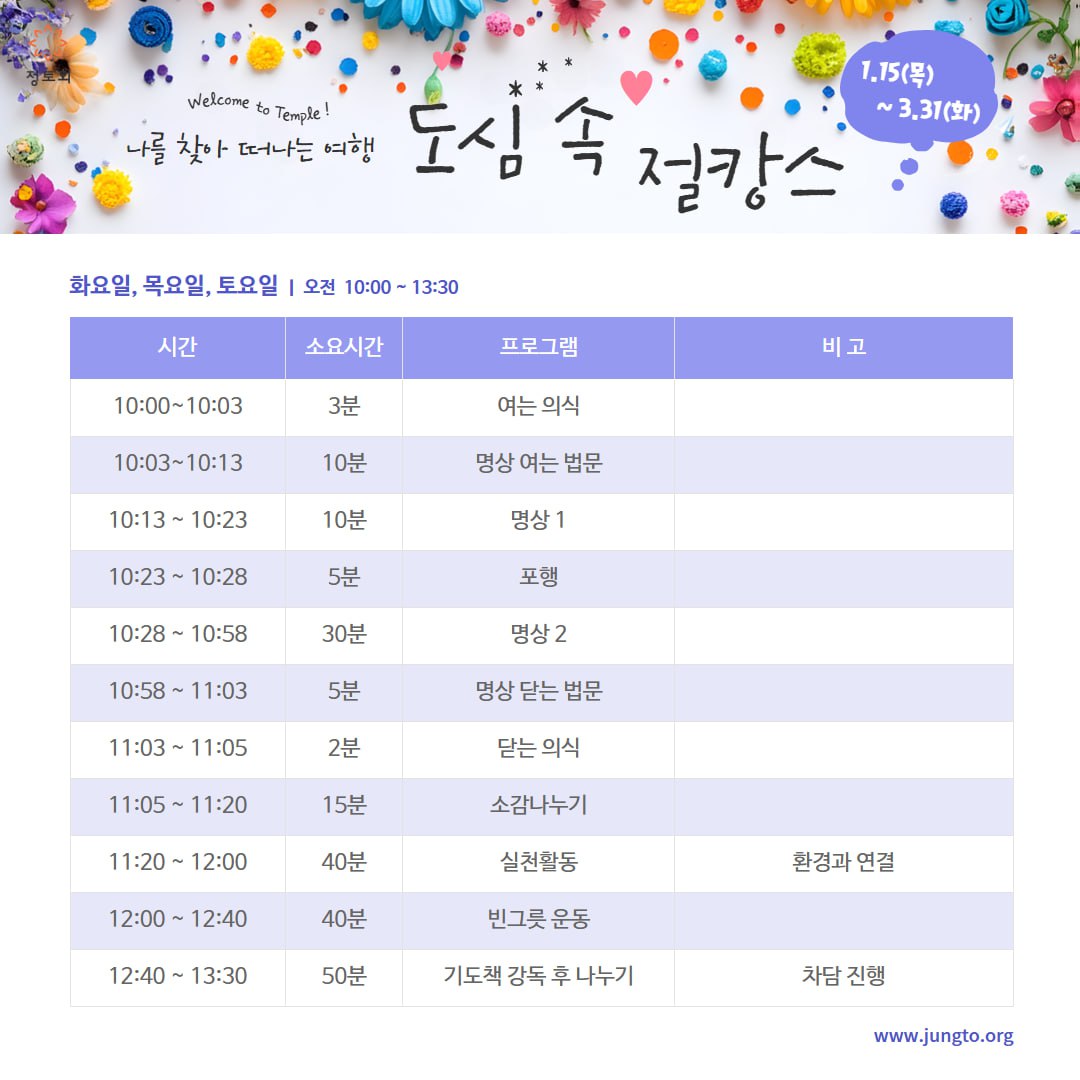 대상 : 일반인 (정토회원은 비회원 지인 동반 시 참여 가능)