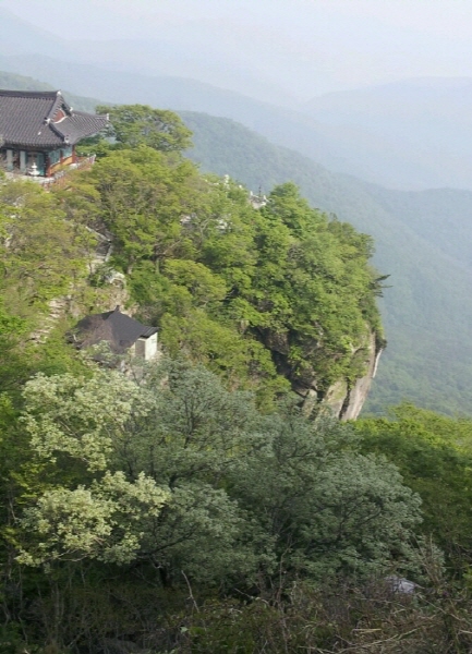 <금산 정상으로 올라가는 길에 보리암을 바라보며>