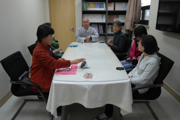 오전 10시에는 행자교육을 하고 있는 문수팀 행자님들과 만남이 있었습니다. 스님께서는 일주일에 한번은 행자님들을 직접 만나서 공부를 점검해주고 계십니다. 오늘은 지난 일주일동안 기도하고 일하고 학습하고 연찬하면서 의문났던 점에 대해서 물었습니다. 스님께서는 행자들에게 수행자로서 어떻게 관점을 잡고 어떻게 수행해야 하는지에 대해서 말씀해주셨습니다.