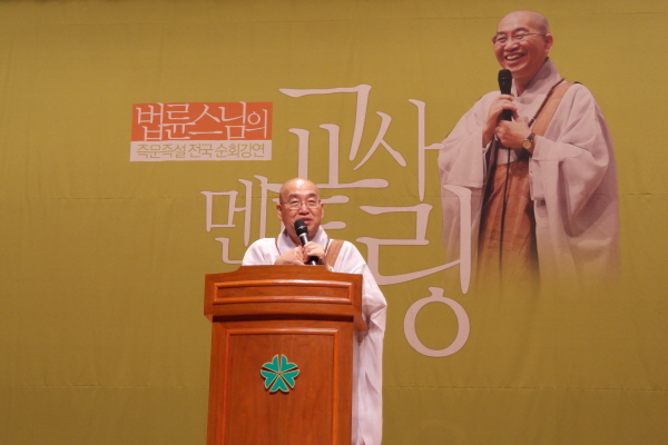 오늘 강연은 교사정토회와 에듀니티에서 진행하는 것으로 교사들이 아이들을 가르치면서 어렵고 힘든 것을 스님께 묻고 길을 찾고자 답을 구했습니다.