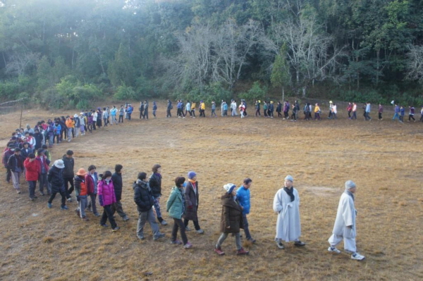 1호차로 옮겨가서 청년들과 질의응답을 하시며 청년들을 격려했습니다. 청년들은 스님을 열렬히 환영하였습니다.