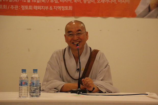 “질문자는 40년 승려생활을 안했으니깐 답이 금방 나왔는데요. 40년 이상 승려생활을 한 사람한테는 그렇게 답이 금방 나오기가 굉장히 어려워요. 그리고 만약에 이런 문제를 가지고 혼자서 고민할 때 여기 청중들한테 조언을 구해봅시다. ‘결혼 한 번 해보세요. 승려생활 40년 그거 뭐 중요해요?’ 하고 생각하는 사람 손 한번 들어봐요. ‘그냥 마 참으세요’ 하는 분 손 들어봐요. 자, 이것 봐요. 차이가 나지요. 나중에 손 든 사람은 주로 불교신자일 거예요. (청중들 웃음)