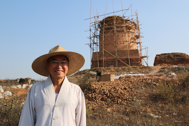 산 꼭대기에 오르니 큰 수투파가 세워져 있었습니다. 수투파에는 보수 공사가 한창 진행 중인 것 같았습니다. 스님께서는 “작년에 왔을 때는 도굴을 해갔는지 파헤쳐져 있었는데 제법 보수를 많이 해놓았네” 하셨습니다.