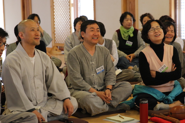 스님의 감로와 같은 법문에 수련생들은 뜨거운 박수갈채로 감사의 마음을 표했습니다. 특히 인도 아유다국의 공주 이야기로 시작해서 오늘 우리의 활동은 그 은혜를 갚는 것이라는 부분에서는 울컥 하며 눈물이 흘러내릴 것만 같았습니다. 당시와 비교했을 때 오늘날 우리들은 훨씬 수월한 환경에 놓여있다는 말씀에 자신감도 생겼습니다. 또 정법의 씨앗을 간직하면서 때를 기다리면 된다는 말씀 속에서는 새로운 희망을 느낄 수 있었습니다. 들숨과 날숨을 알아차리면 시공간을 초월한다는 말씀 속에서는 지금 여기로 돌아와 마음이 편안해짐을 느낄 수 있었습니다. 수련생들은 이런 소중한 가르침을 주신 스님께 다시한번 합장 반배하고 감사의 박수를 보내면서 편안한 마음으로 부지런히 정진해 나갈 것을 함께 다짐했습니다.