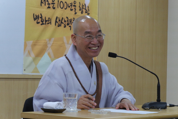 스님께서는 수강생 10명의 질문에 대한 해법을 최대한 담아서 열정적으로 강의해주셨습니다. 사회통합에 대한 해법을 찾기 위해 정의란 무엇인가라는 철학적인 질문에서부터 시작하여, 우리 사회가 가지고 있는 갈등의 원인, 어떻게 갈등을 풀어갈 것인가 등 다양한 모색을 할 수 있는 시간이었습니다. 평화리더십아카데미에 참여한 수강생들은 우리 사회를 이끌어가고 있는 전문가 집단인 만큼 스님의 말씀이 보다 더 책임감있게 와 닿았습니다.