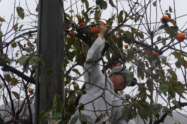 비가 와서 원래 계획 했었던 감을 따지는 못하고 점심 공양 후 잠시 쉬었다가 집 앞의 감나무에서 감을 땄습니다.