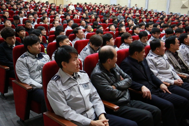 330개의 좌석이 꽈 차고 몇 명은 보조 의자를 가지고 와서 앉았습니다. 경찰청 직원들의 스님에 대한 높은 열기를 실감할 수 있었습니다.