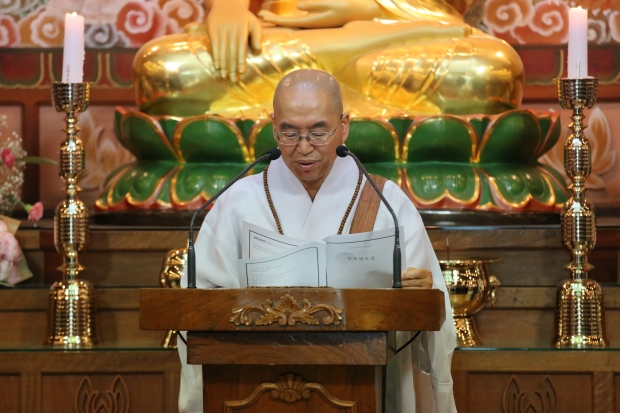 “이곳에 모인 저희들은 부처님께서 이 땅에 오신 큰 뜻 다시 새기며 지금 이 땅에 그 뜻이 꽃피워지길 일심으로 발원하옵니다... (중략)