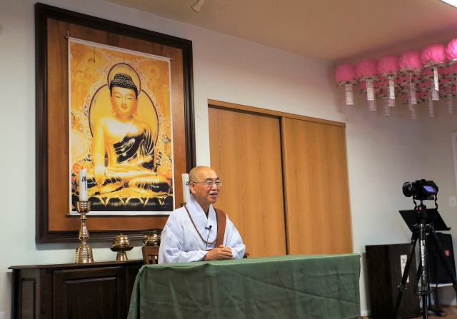 기도 후 스님은 소말리아 아덴만에서 근무하고 있는 해군 장병들에게 보낼 추석 격려 동영상 메시지를 촬영하였습니다. ‘추석이지만 스님도 여러분들과 마찬가지로 지금 미국에 와 있다고 비록 방법은 다르지만 다 같이 대한민국의 평화를 위해 노력해보자’고 하면서 타국에서 맞이하는 해군 장병들에게 따뜻하지만 힘찬 격려의 메시지를 보냈습니다.