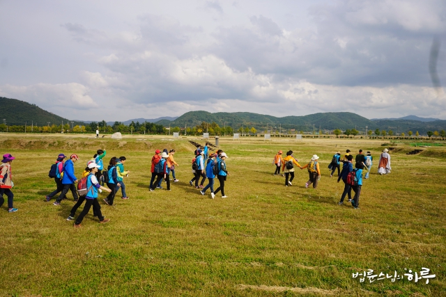 제가 아침 일찍 나와서 여러분들 놀기에 어디가 가장 좋은가 답사를 해봤는데요. 교리 최부자집 옆에 향교가 있는데 여러분들 놀기에 가장 좋아보였어요. 여러분들 잘 걸을 수 있죠? 오늘은 단풍과 꽃도 구경하고 다리 아플 정도로 걷기도 하며 오늘 저녁까지 같이 놀아요.”