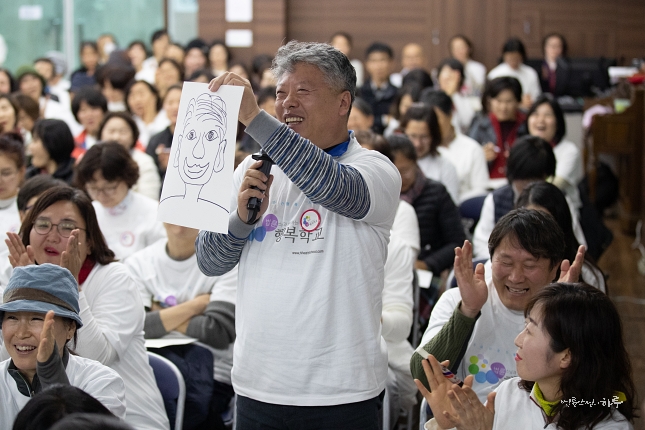 여러분은 지금까지 이런 공부를 해온 것입니다. 그래서 이 학교의 이름도 ‘행복학교’라고 지었습니다. 여기서 배우는 최우선 과제는 ‘나부터 행복하기’입니다. 남 이야기는 이제 그만하고, 우선 나부터 행복해야 합니다. 남편이 돈을 못 번다, 아이가 시험에 떨어졌다, 아이가 방에만 있다, 이런 이야기만 자꾸 해서 스스로를 불행하게 하지 말고, 그런 조건 속에서도 나는 여전히 행복한 삶을 살 수 있습니다. 세상이 어떻게 되든 그 속에서 행복하게 사는 것이 첫 번째로 해야 할 일입니다.”