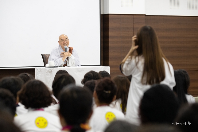 스님도 강당 맨 뒤편에 앉아 참가자들의 이야기를 들으며 함께 웃었습니다.