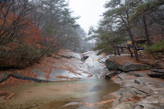 우비와 우산을 갖추고 산행을 시작했습니다. 푸른 가을 하늘과 곱게 어우러졌던 단풍은 이제 낙엽이 되어 땅을 온통 가을로 물들여놓았습니다. 비가 오는 대로, 가을이 끝나가는 대로, 멋진 풍경이 펼쳐졌습니다.