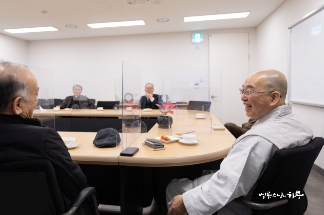 안녕하세요. 오늘도 서울 정토회관에서 하루를 시작했습니다. 새벽 기도와 명상을 마치고 평화재단으로 이동해 종교인 분들을 한 분씩 정성껏 맞이했습니다.