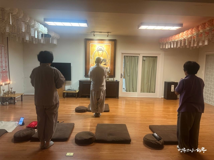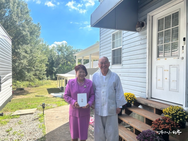 오전 11시에는 워싱턴 정토회원 김영자 님이 찾아와 인사를 드렸습니다. 작년 가을 워싱턴에서 깨달음의장에 참여할 수 있게 된 것에 대해 감사 인사를 하고 보시금을 전했습니다.