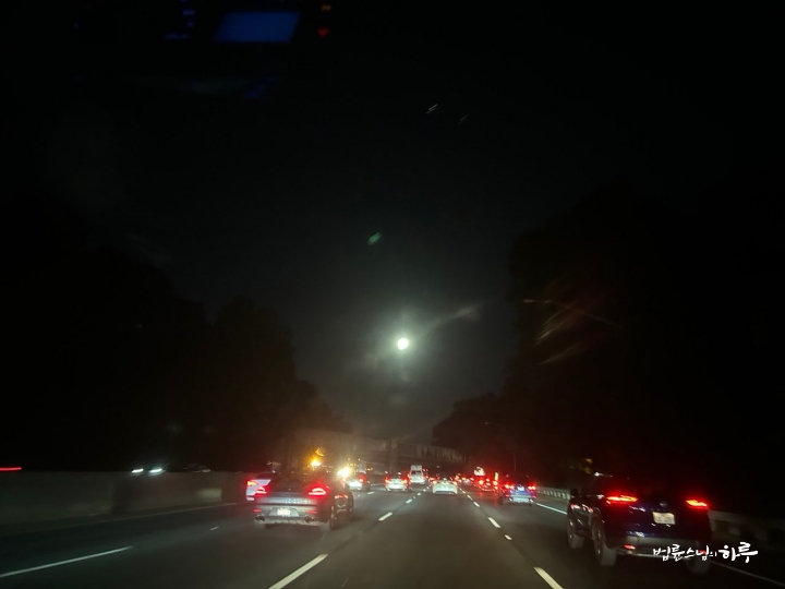 돌아오는 고속도로에서 하늘을 보니 둥근 보름달이 휘영청 떠 있었습니다. 스님은 워싱턴 D.C. 에서 지난주에 3일, 이번 주에 2일, 총 5일 동안 여러 관계자와 미팅을 하면서 어떤 경우에도 한반도에서 전쟁만큼은 막아야 한다고 쉼 없이 이야기했습니다. 둥근 보름달을 보면서도 한반도에 항구적인 평화가 찾아오기를 기원했습니다.