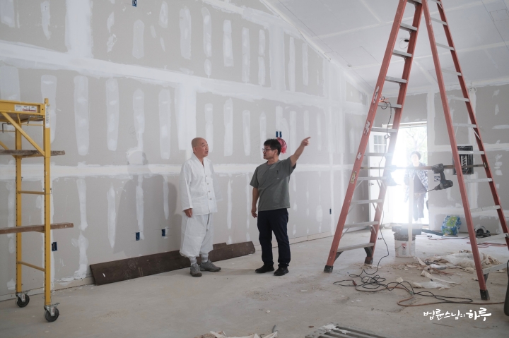 스님은 미주 정토회관에서 새벽 5시에 수행과 명상으로 하루를 시작하셨습니다. 아침 식사를 마친 뒤 귀국을 위해 짐을 정리하고, 현재 내부 공사가 진행 중인 명상실 건물을 들러 현장을 점검했습니다. 점검을 마치고 공사를 하고 있는 분들에게 식비를 전하며 공사 마무리를 잘해 달라고 격려했습니다.