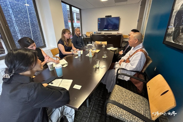 스팀슨 센터에 도착하자 선임 연구원 제니 타운(Jenny Town) 님이 스님을 반갑게 맞이했습니다. 제니 님은 존스 홉킨스 대학교 국제 대학원 재직 시절부터 스님과 인연을 이어 왔으나, 서로 일정이 맞지 않아 그동안 만나지 못했다고 합니다. 그래서 이번이 스님이 스팀슨 센터를 처음 방문한 자리였습니다.