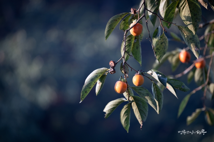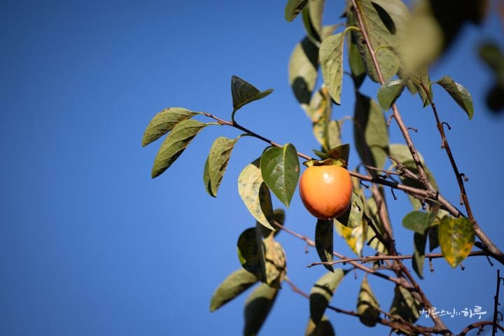 두북수련원은 어느새 가을빛으로 짙게 물들어 있었습니다. 감나무에는 주황빛 감이 주렁주렁 달렸습니다. 가지가 휘어질 만큼 탐스럽게 열린 감들은 햇살을 받아 반짝였고, 그 아래로 떨어진 낙엽들 사이로 감 몇 알이 뒹굴며 가을의 여유를 더했습니다.