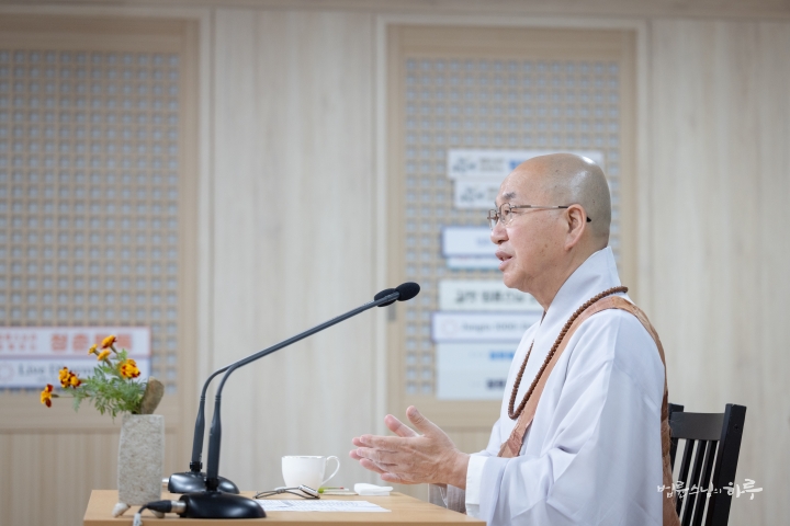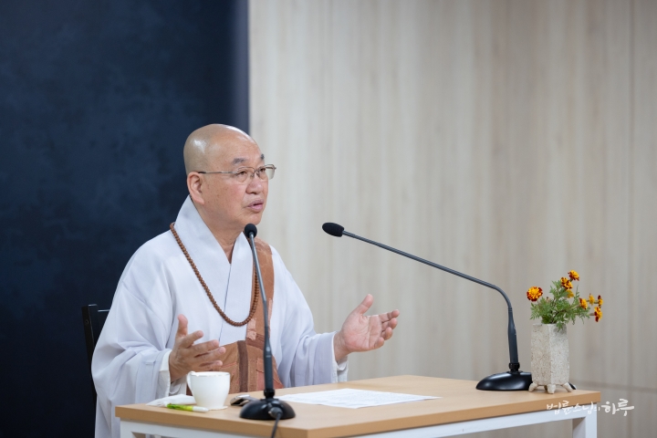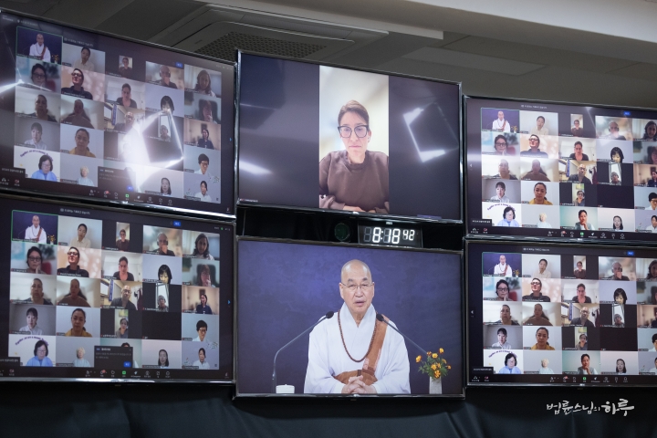 다음은 그동안 수업을 들으면서 궁금했던 점에 대해 자유롭게 질문하는 시간을 가졌습니다. 여섯 명이 손들기 버튼을 누르고 스님에게 질문을 했습니다. 수업 내용에 대한 질문도 나오고, 개인 고민에 대한 질문도 나오고, 다양한 질문들이 이어졌습니다. 그중 한 명은 결혼 생활 내내 시어머니에게 존중받지 못한다는 고민을 털어놓았습니다.