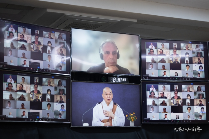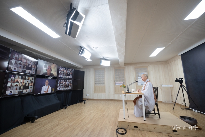 이어서 오전 8시부터는 두북수련원 방송실에서 정토담마스쿨 학생들과 온라인으로 즉문즉설 시간을 가졌습니다.