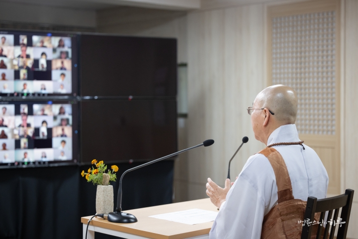 이어서 스님이 화상회의 방에 입장하자 학생들을 대표하여 세 명이 그동안 수업을 들은 소감을 이야기했습니다.