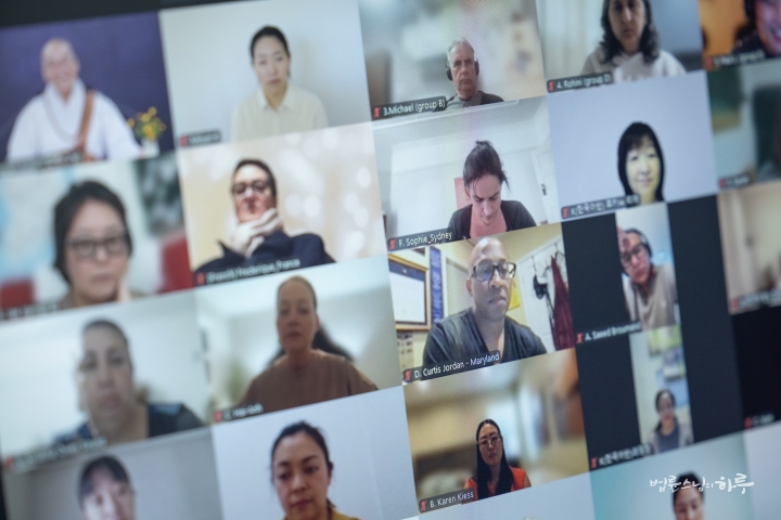 호주, 캐나다, 인도, 일본, 필리핀, 한국, 싱가포르, 스리랑카, 미국, 베트남, 프랑스, 독일, 이스라엘 등 13개국에서 정토담마스쿨 수업을 듣고 있는 학생들이 온라인 공간에서 한자리에 모였습니다. 배움에 국경이 없다는 것을 실감하며 모두가 서로에게 반갑게 인사를 건넸습니다.