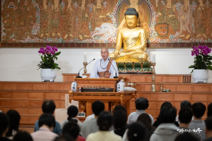특히 이번 주와 다음 주, 2주간은 정일사 정진 기간입니다. 자기 정진과 세상의 평화를 함께 기원하는 시기입니다. 그러니 이번 주에는 조금 더 자신의 정진에 집중해 보시기 바랍니다. 자신을 오롯이 알아차리는 데 마음을 두고, 자신을 괴롭히는 데 에너지를 낭비하지 말며, 주변을 살피고 세상에 도움이 되는 봉사와 보시를 실천해 주시길 바랍니다.”