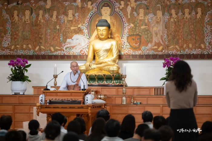 안녕하세요. 오늘은 정토회 회원들이 자신의 수행을 점검하는 수행법회가 열리는 날입니다.