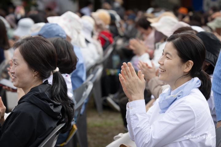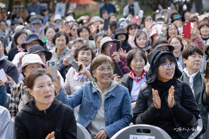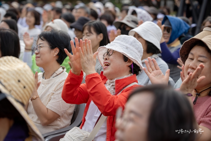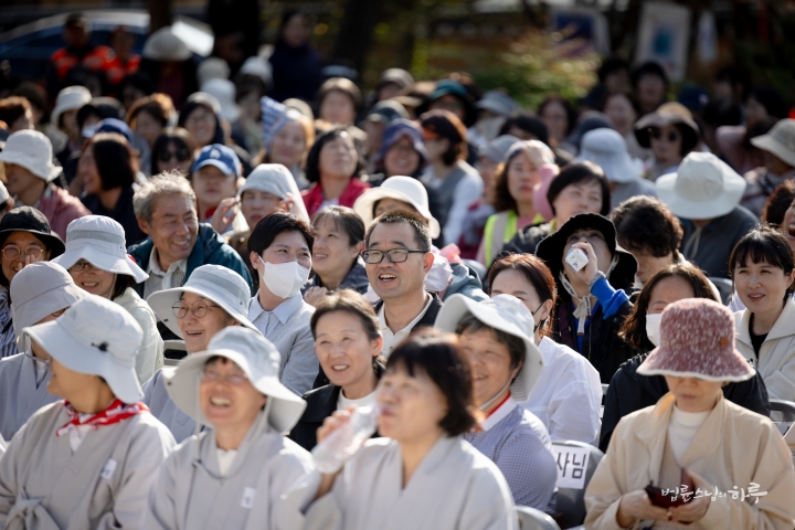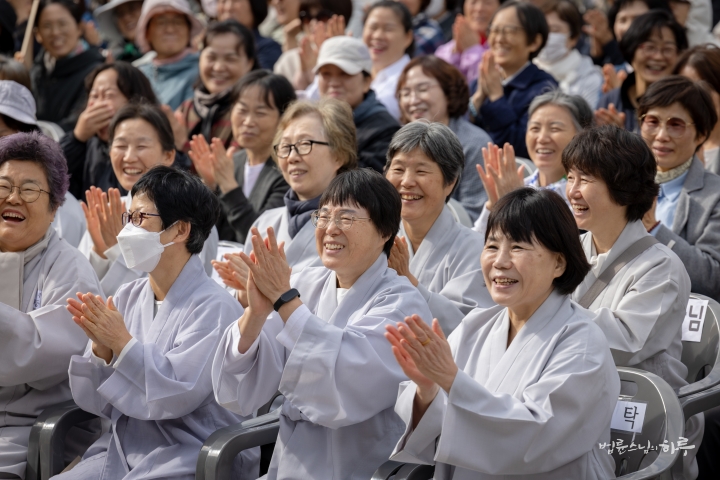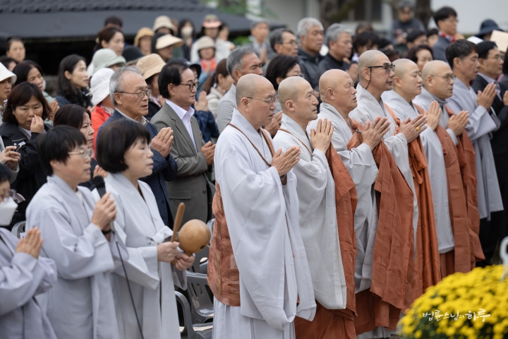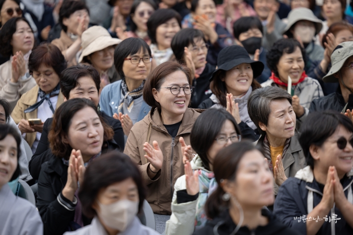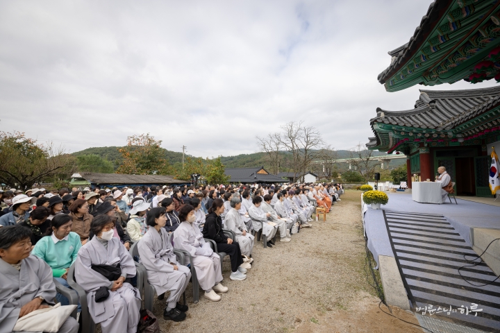 오전 10시 정각이 되어 기념 법회를 하기 위해 마당으로 이동했습니다. 정토회 대구경북지부 회원들을 비롯하여 전국에서 많은 정토회 회원들이 참석했습니다.