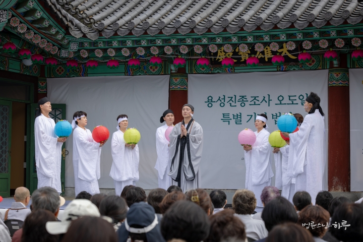 140년 전, 조선의 어느 날 아도모례원에서 청년 용성이 꿈꿨던 희망과 깨달음을 향한 간절한 발원을 지금의 우리가 함께 느껴보는 내용으로 감동적인 공연이 펼쳐졌습니다.
