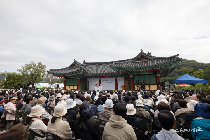 이어서 국기에 대한 경례, 애국가 제창, 순국선열에 대한 묵념, 용성조사님의 행장을 낭독하는 영상을 함께 본 후 이철우 경북 도지사님의 축사를 사회자가 대독 했습니다.
