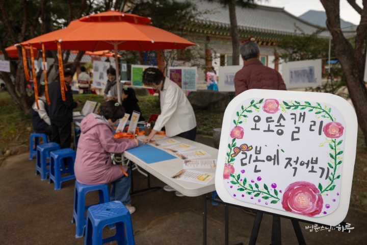 점심시간에는 곳곳에 환경 실천 활동과 아도화상과 모례장자, 용성조사님의 업적을 되새길 수 있는 다양한 부스가 마련되어 있어서 회원들 모두가 아도모례원을 한 바퀴 돌며 재미있는 시간을 보냈습니다.