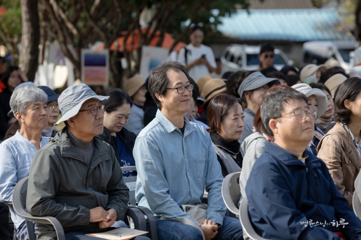 “대구·경북지부 회원 여러분, 모두 수고 많으셨습니다. 오늘은 오랜만에 정말 맑은 날이네요. 하늘은 푸르고, 감은 빨갛게 익어 있습니다. 이렇게 좋은 날 여러분을 만나 뵙게 되어 참 반갑습니다. 방금처럼 신나게 뛰어놀다 보면 고민이 저절로 사라질 것 같아, 오늘은 즉문즉설을 안 해도 되지 않을까 싶습니다. 그래도 혹시 궁금한 게 있다면 대화를 시작해 볼까요?”