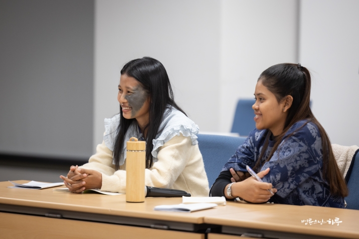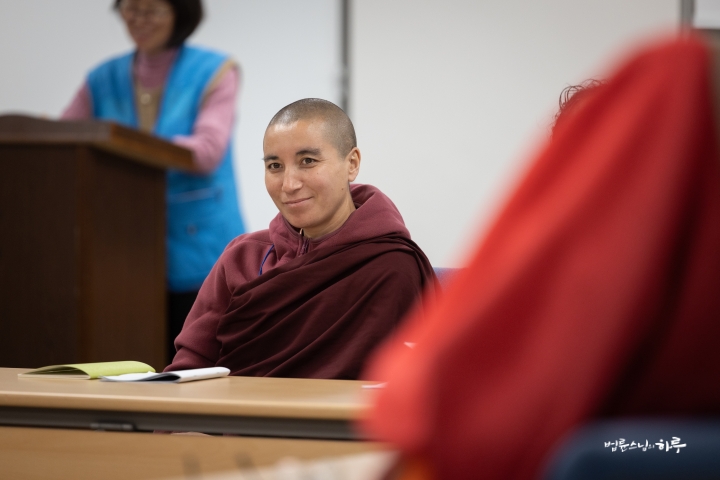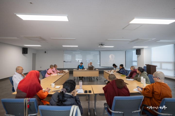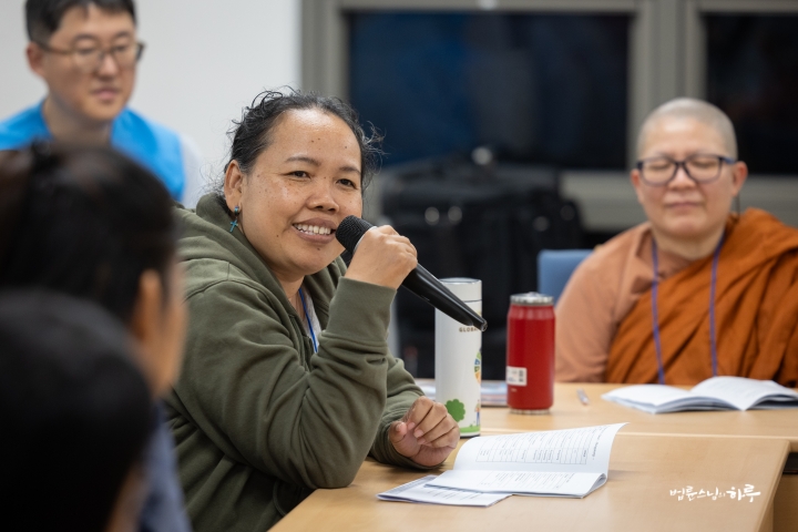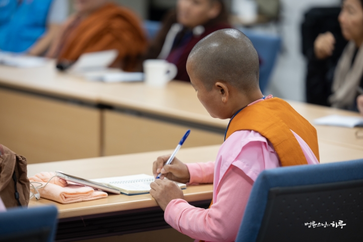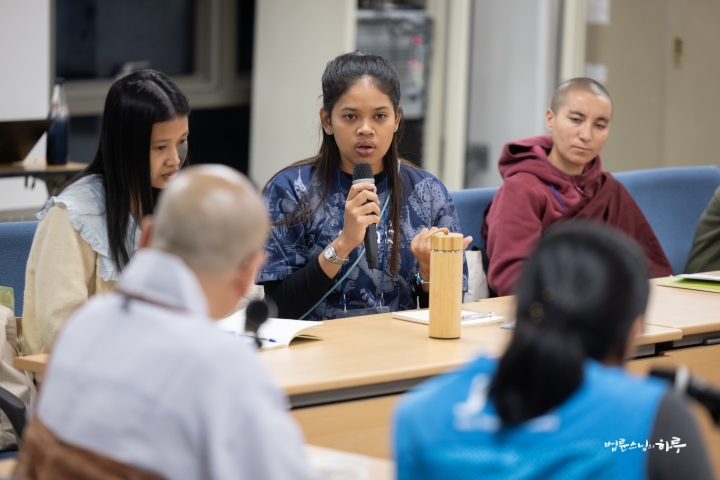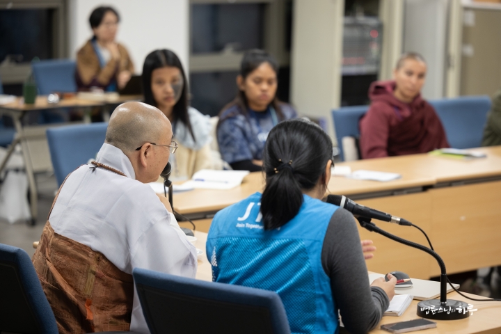 여성 INEB 참가자들은 어제 환영식을 가진 후 오늘은 무변심 법사님으로부터 ‘정토회의 교육 프로그램’을 주제로 강의를 듣고 질의응답 시간을 갖고 있었습니다.