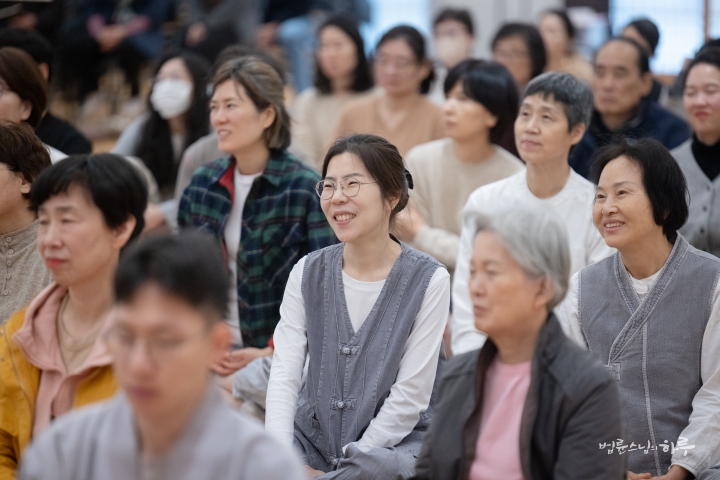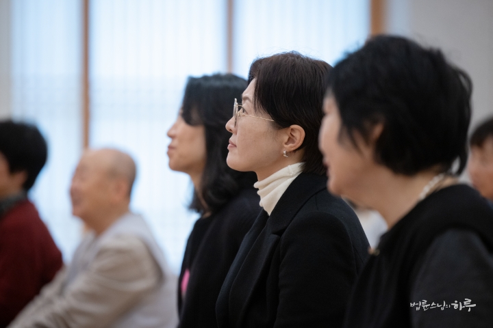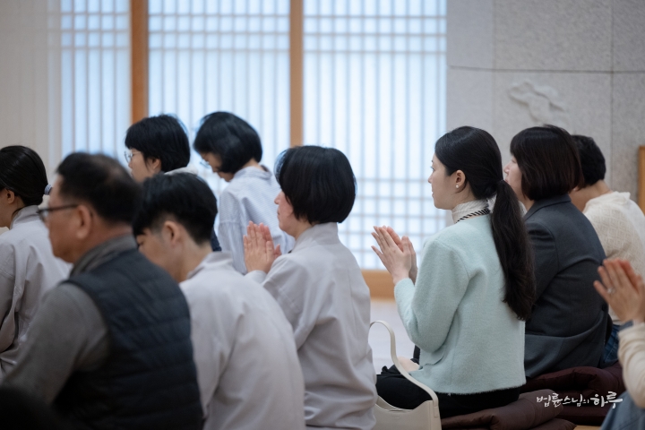 안녕하세요. 오늘은 정토회 회원들이 일주일에 한 번 자신의 수행을 점검하는 수행법회가 열리는 날입니다.