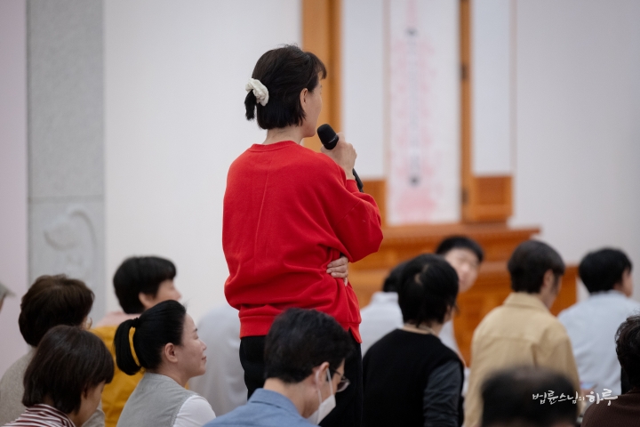 이어서 사전에 질문을 신청한 사람들의 질문을 받았습니다. 온라인으로 두 명이 스님에게 질문하고, 대화를 나누었습니다. 그중 한 명은 앞으로 북한이탈주민들을 돕는 데 도움이 될 수 있도록 북한의 실제 삶에 대해 더 알고 싶다고 스님에게 질문했습니다.