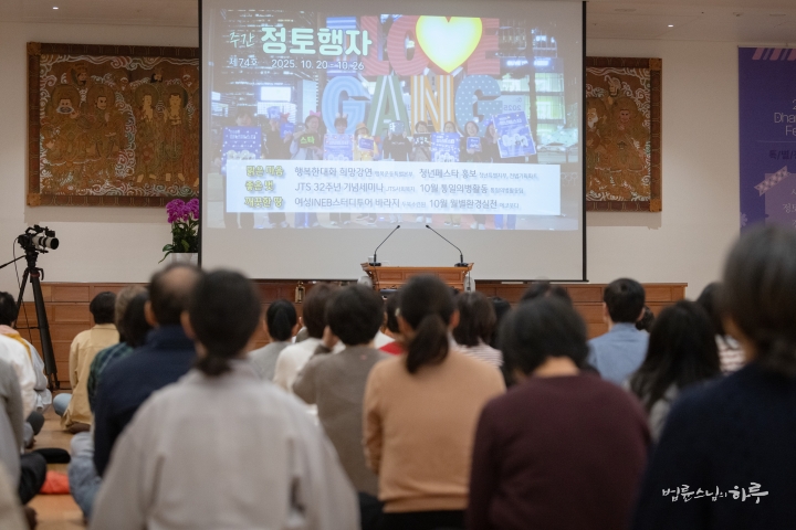 먼저 정토회 대표가 다가오는 ‘청년 페스타’ 행사 참가자 접수 현황을 발표하고, 많은 청년들이 참가할 수 있도록 정토회 회원들의 적극적인 홍보를 당부했습니다. 이어서 지난 한 주 동안 정토행자들의 활동 모습을 영상으로 보았습니다.